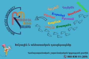 Վ. Բրյուսովի անվան պետական համալսարանի Համալսարանական շարունակական կրթության բաժինը սիրով հրավիրում է մասնակցելու անգլերենի վճարովի դասընթացների։