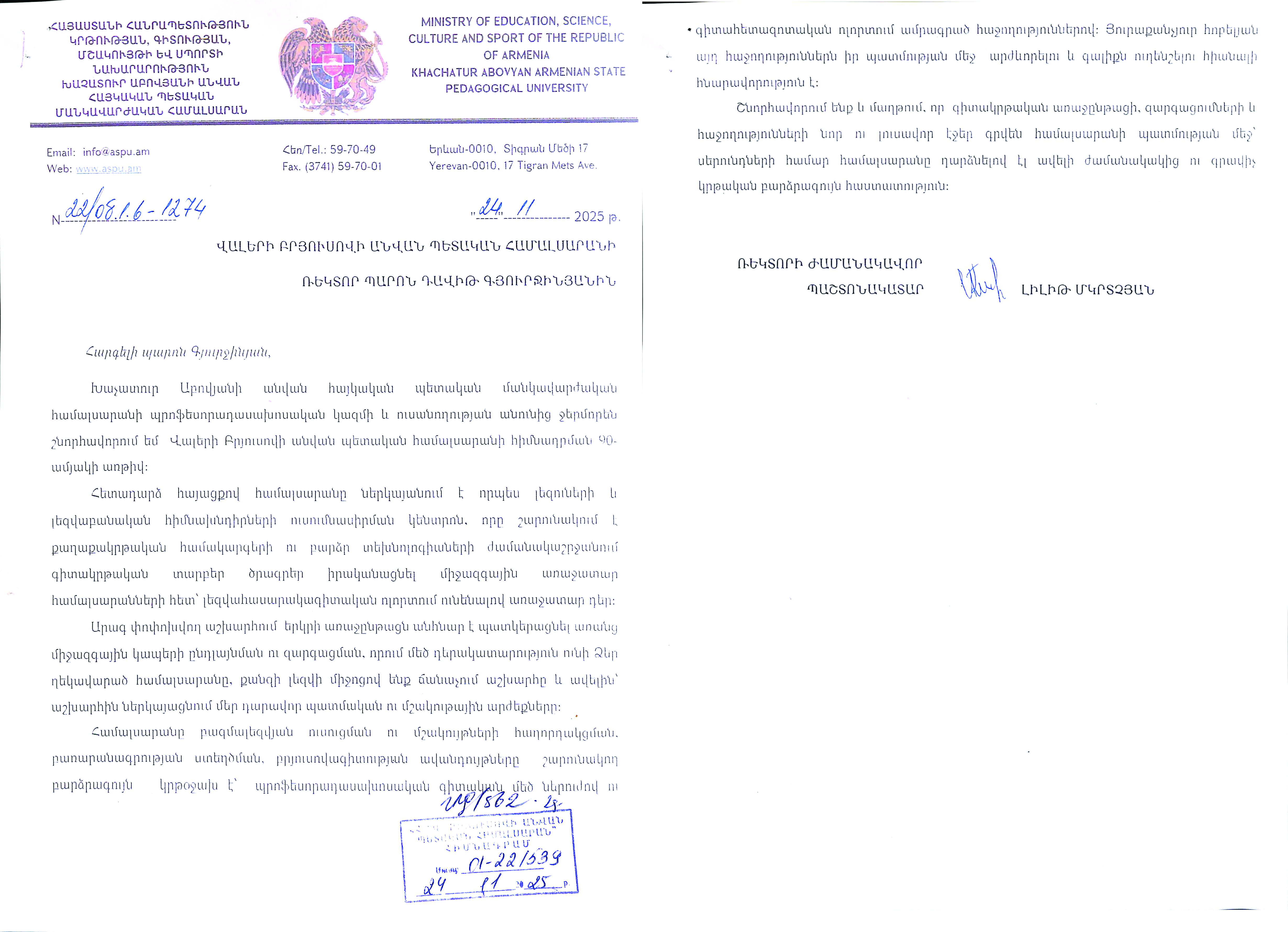 Վ․ Բրյուսովի անվան պետական համալսարան: Բոլոր իրավունքները պաշտպանված են 2025