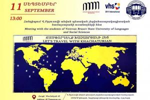 Վ.Բրյուսովի անվան պետական լեզվահասարակագիտական համալսարանի ՍՄԱՐԹ կենտրոնում (Կարիերայի կենտրոնի և Շրջանավարտների միավորման մասնաշենքի, 4-րդ հարկ) սեպտեմբերի 11-ին ժամը՝ 13:30-ին տեղի է ունենալու «Ճամփորդենք Խաչատրյանի հետ» կրթական-մշակութային ծրագրի ներկայացումը: