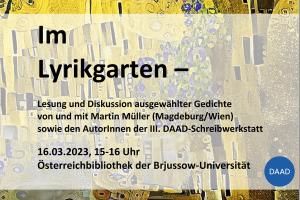 Մարտին Մյուլլերի բանաստեղծությունների ընթերցում-քնարկումներին, որը տեղի կունենա 2023 թվականի մարտի 16-ին, ժամը 15-16-ը Վ. Բրյուսովի անվան պետական համալսարանի Ավստրիական գրադարանում։