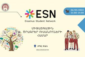 Ս. թ մայիսի 6-ին՝ ժամը 11:00-ից, ԲՊՀ 2-րդ մասնաշենքում տեղի է ունենալու հանդիպում «Էրազմուս + ուսանողական ցանց» («Erasmus+ Network Student») կազմակերպության ներկայացուցիչների հետ: