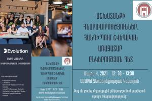 Ս.թ. մայիսի 4-ին ԲՊՀ-ի ՍՄԱՐԹ ձեռներեցության կենտրոնում տեղի կունենա հանդիպում «Էվոլուշն» (Evolution) շվեդական կազմակերպության ներկայացուցիչների հետ, ովքեր կներկայացնեն իրենց կազմակերպությունում առկա թափուր աշխատատեղերը մեր ուսանողների և շրջանավարտների համար: